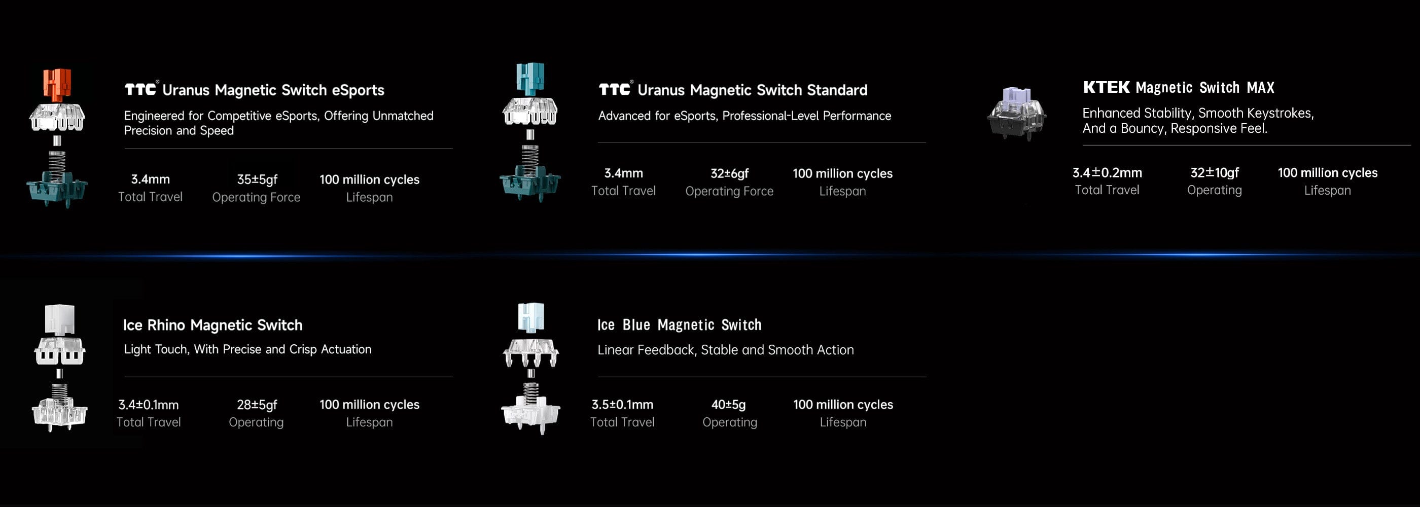 Switch | Ice Blue Magnetic Switch | KTEK Magnetic Switch | Ice Rhino Magnetic Switch | Uranus Magnetic Switch Standard | Uranus Magnetic Switch eSports | |