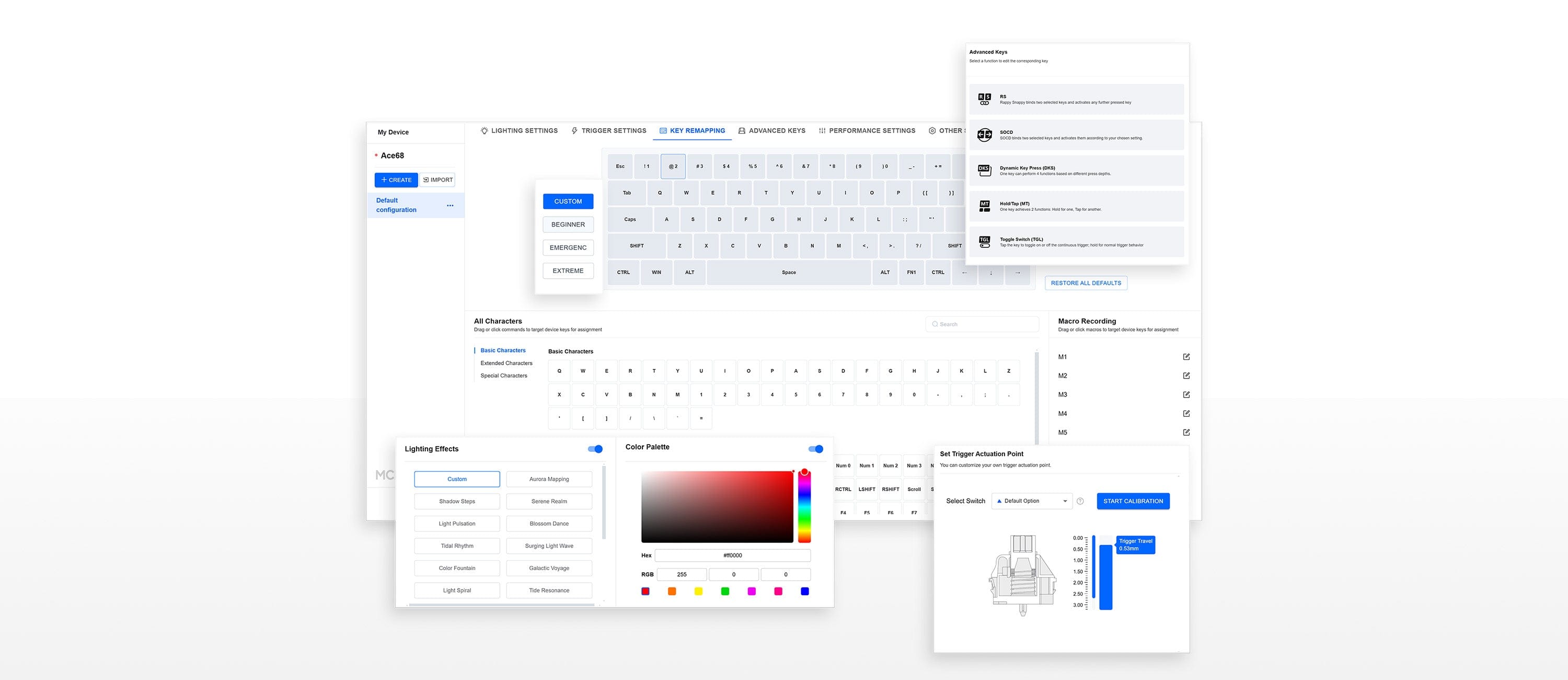 Customize dynamic key travel, key macros, and advanced features like SOCD, RS, DKS, MT, and TGL, ensuring smoother, faster, and more responsive gameplay.